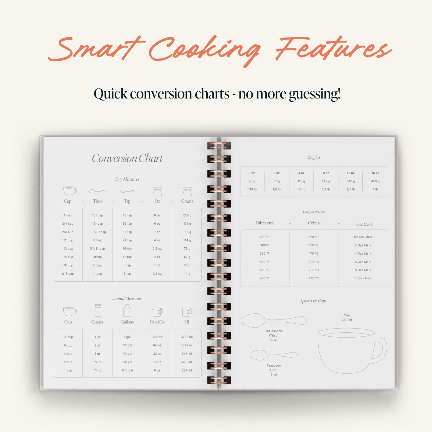 Inside, the structured layouts invite you to organise your favourite recipes, jot down special memories, and reflect on your cooking adventures. This journal is perfect for keeping track of family meals and culinary experiments in one charming place.